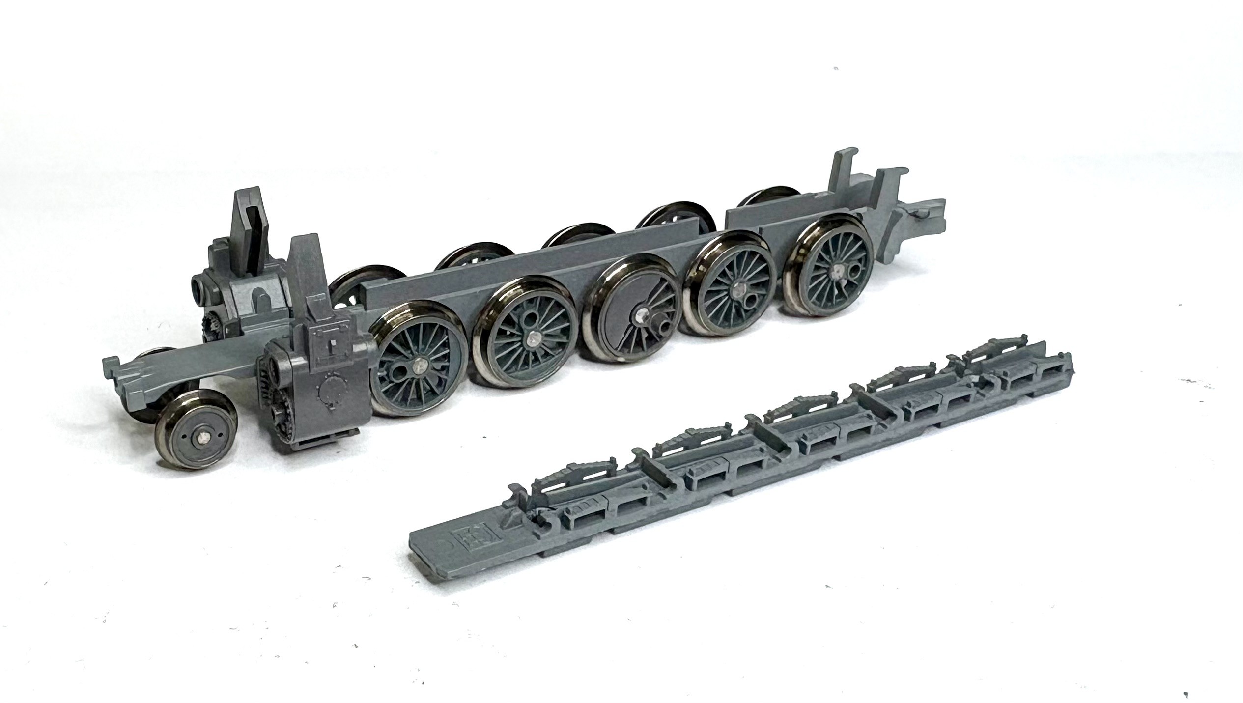 1x Rahmen, 1x Boden , Zylinder li+re , 4x Kuppelradsatz , 1x Treibradsatz , 1xVorläuferradsatz,2xTenderraddatz m.H. 2x Tenderradsatz