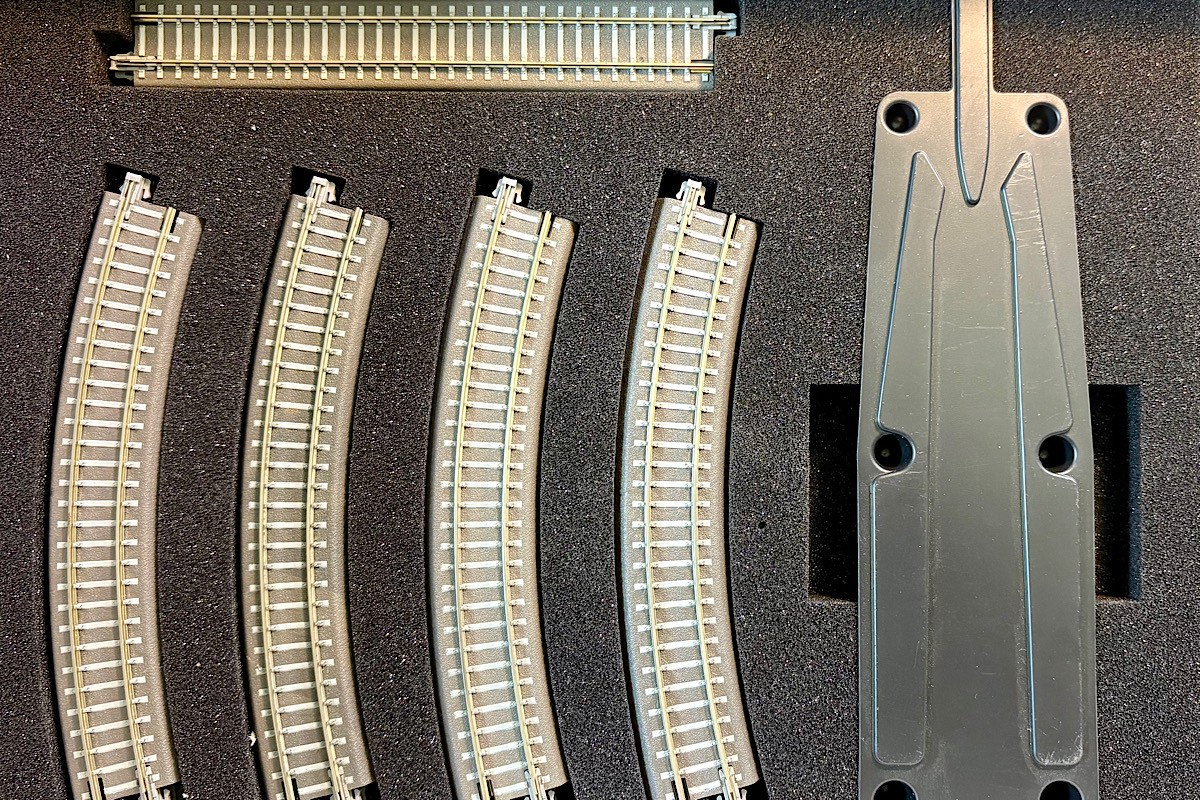 Bettungsgleisoval (12x gebogen, 1x gerade,1x gerade m. Anschluß, 1x Aufgleiser)