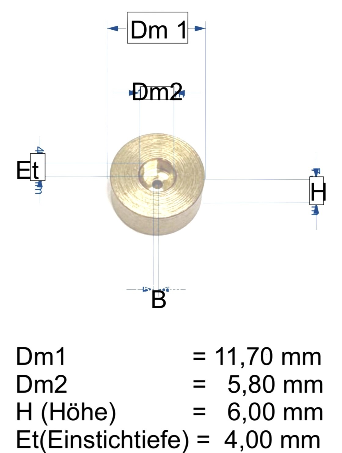1Stück Präzisionsschwungmasse 11,7mm x 6mm , mit Einstich für Kardanbuchse