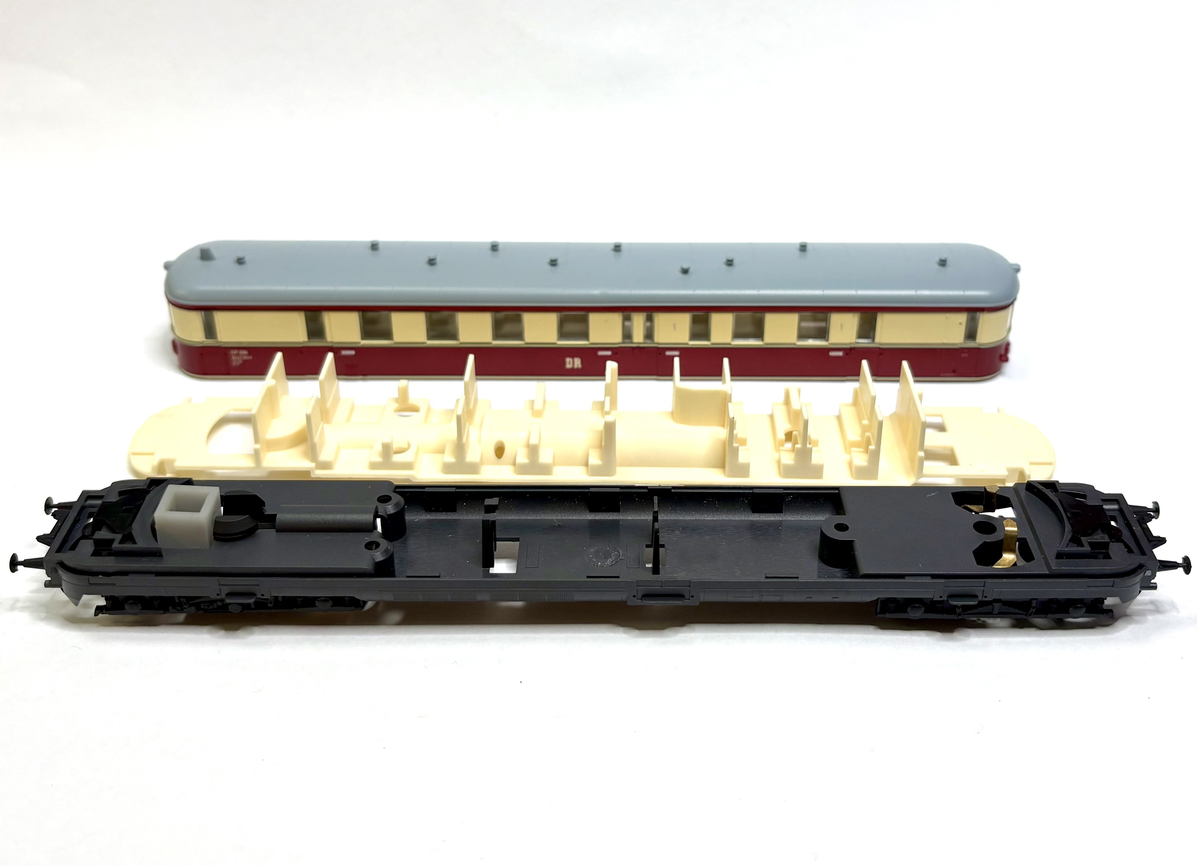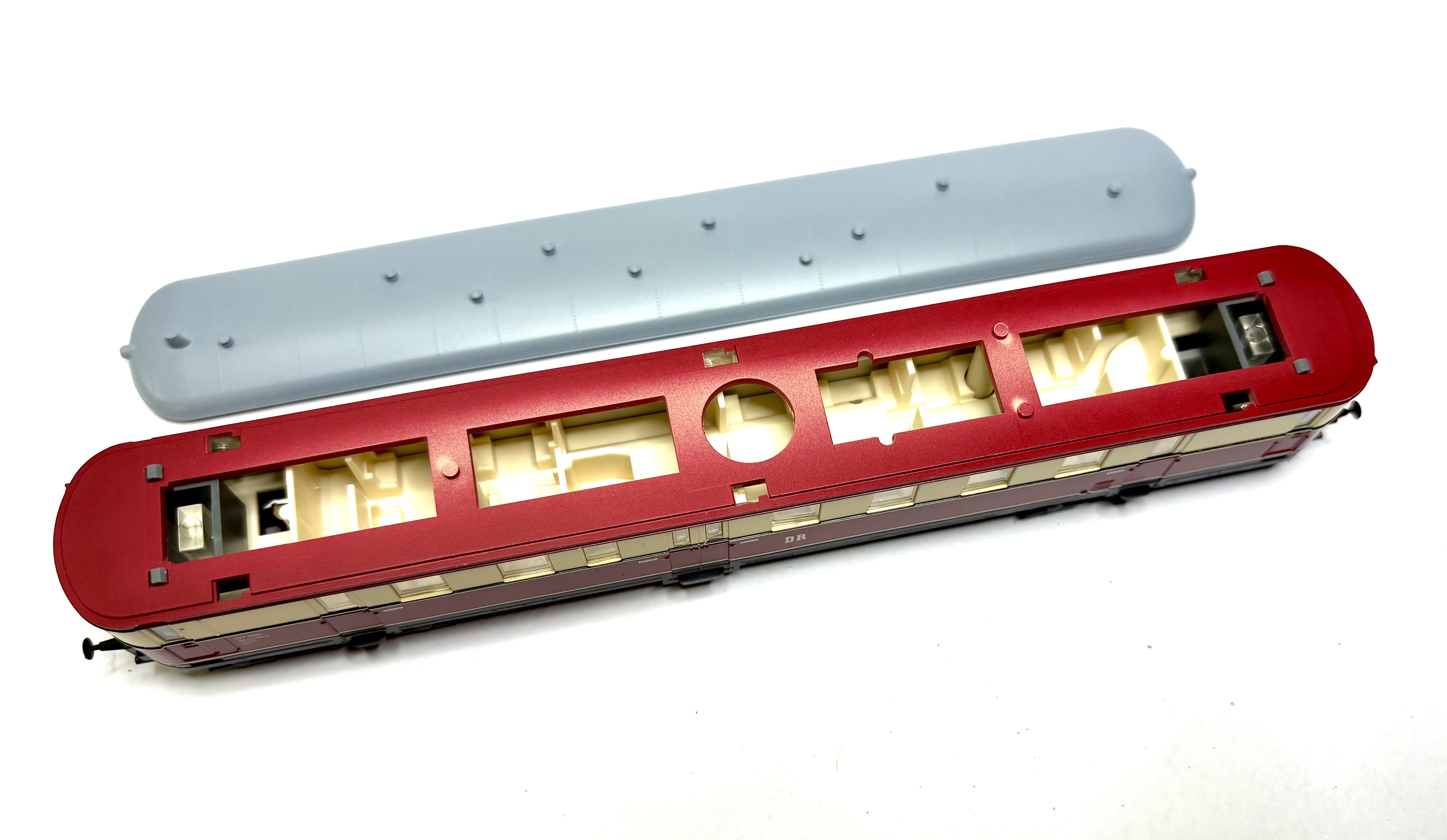Der Dummy kann durch entprechende Zahnräder/Motor/Elektronik zum vollwertigen Triebwagen aufgerüstet werden