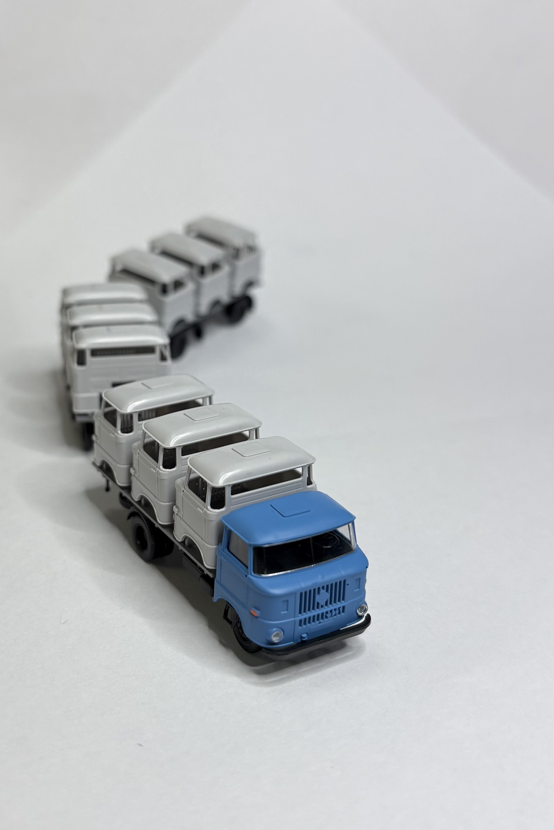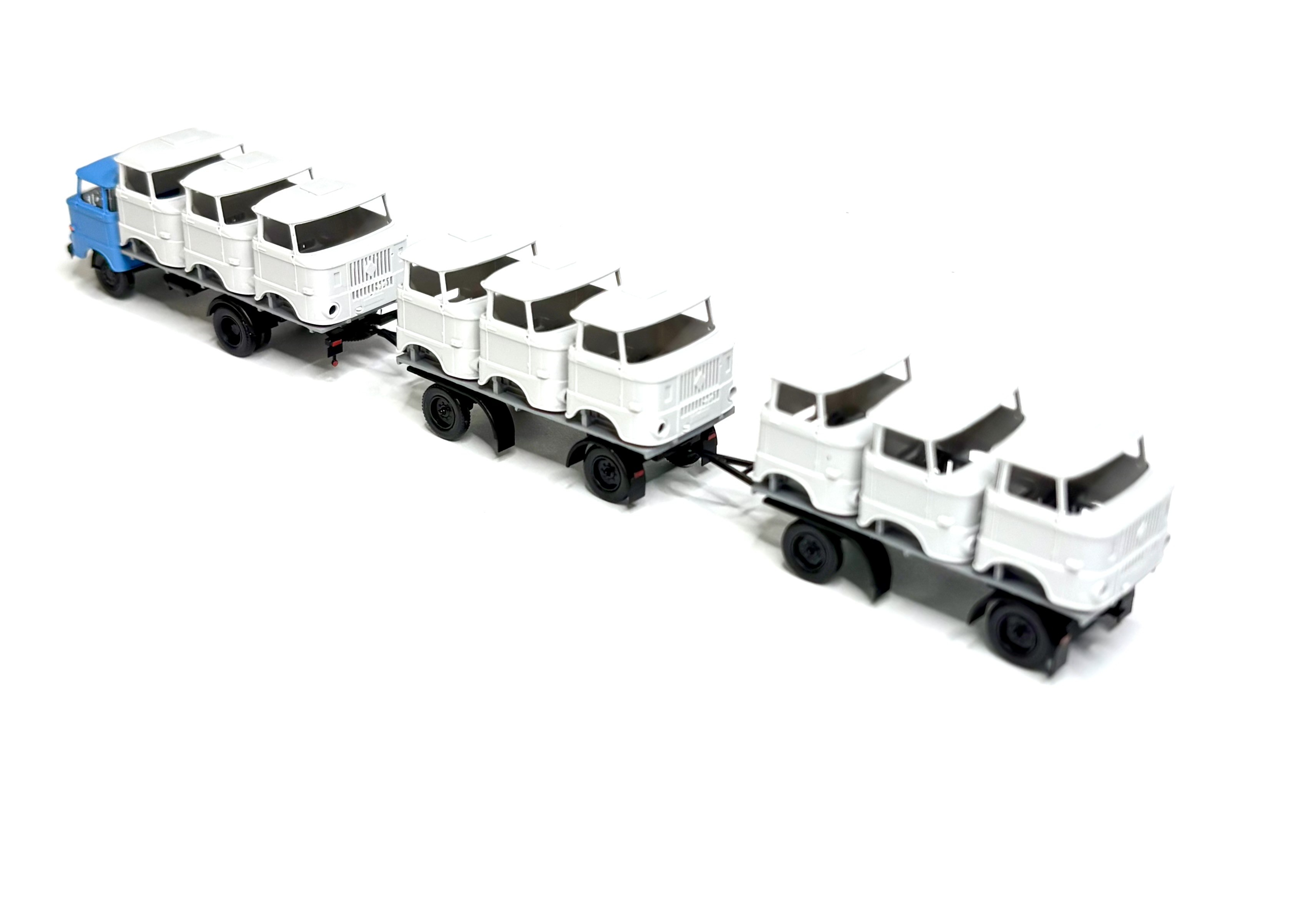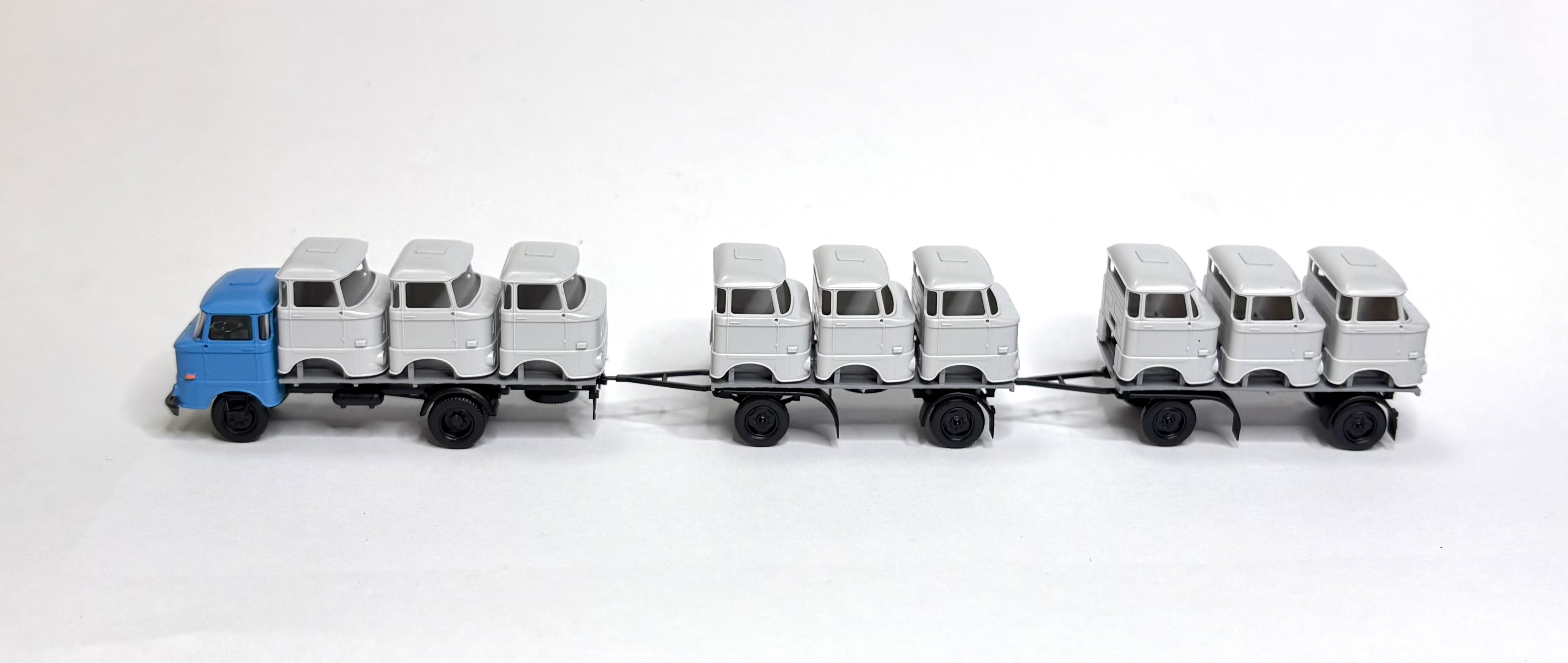 Das Modell stellt den Transport von W50-Fahrzeugkabinen von/in die Lackiererei oder zu einem Umbaubetrieb dar.